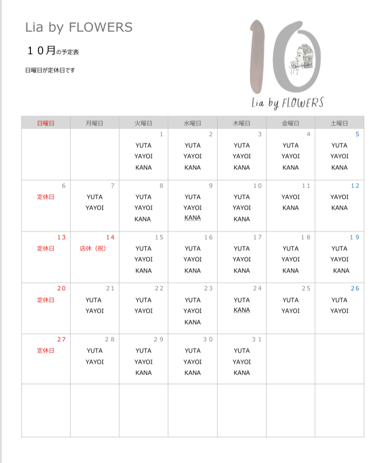 10月のお休み